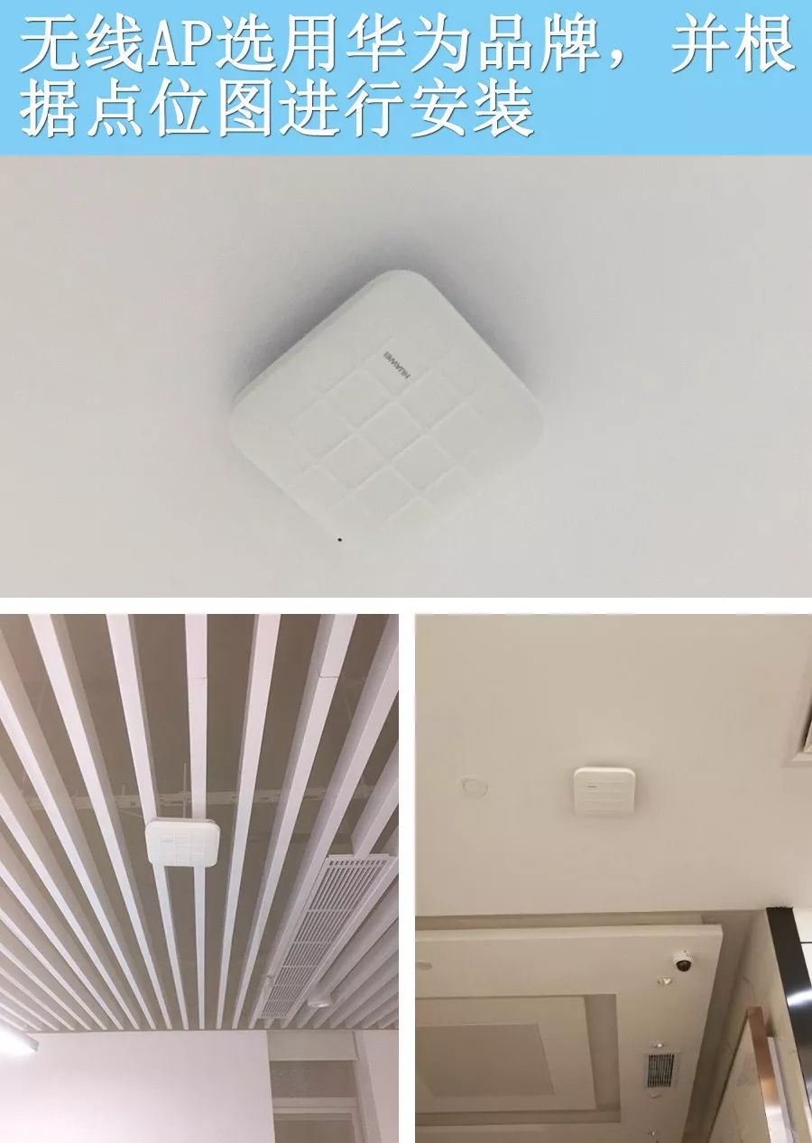正通校区的无线设备采用国内优质品牌: 华为工程师实地勘测办公环境, 精准确认每个无线AP点位后, 上架无线AP并测试调试!