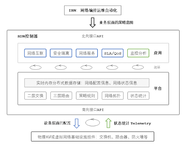 SDN的概念主要体现的是技术架构视角,强调的是实现网络设备的软件硬件解耦、网络系统的控制面与转发面解耦,以及整体全面的可编程性。SDN的优势在于它是基于系统全局信息进行网络转发等的策略决策的,实现了网络管控模式从设备层面转向系统层面,提供了网络运维自动化统一的配置和控制接口,从而能够更好地实现对云计算业务的敏捷部署、变更、扩展的支撑。